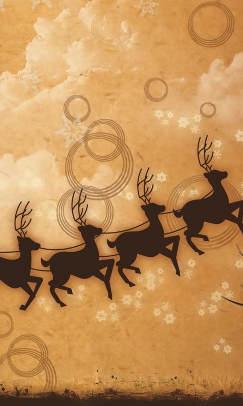 Раждественские фоны Санты клауса и оленей в санях обои hd - 480x800