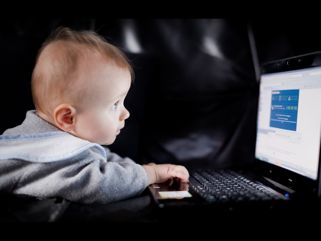 Ребенок за ноутбуком обои для рабочего стола - 1024x768