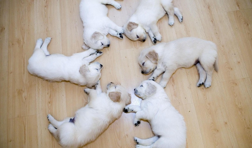 Симпатичные Шесть щенков спят в кругу обои - 1024x600