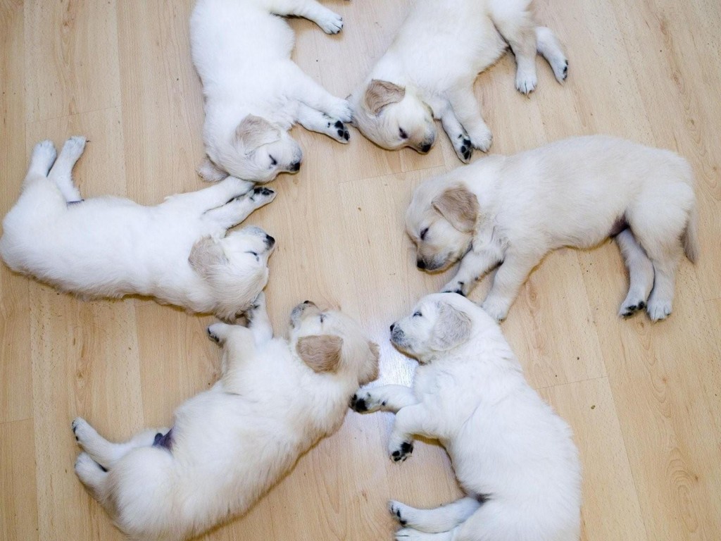 Симпатичные Шесть щенков спят в кругу обои - 1024x768