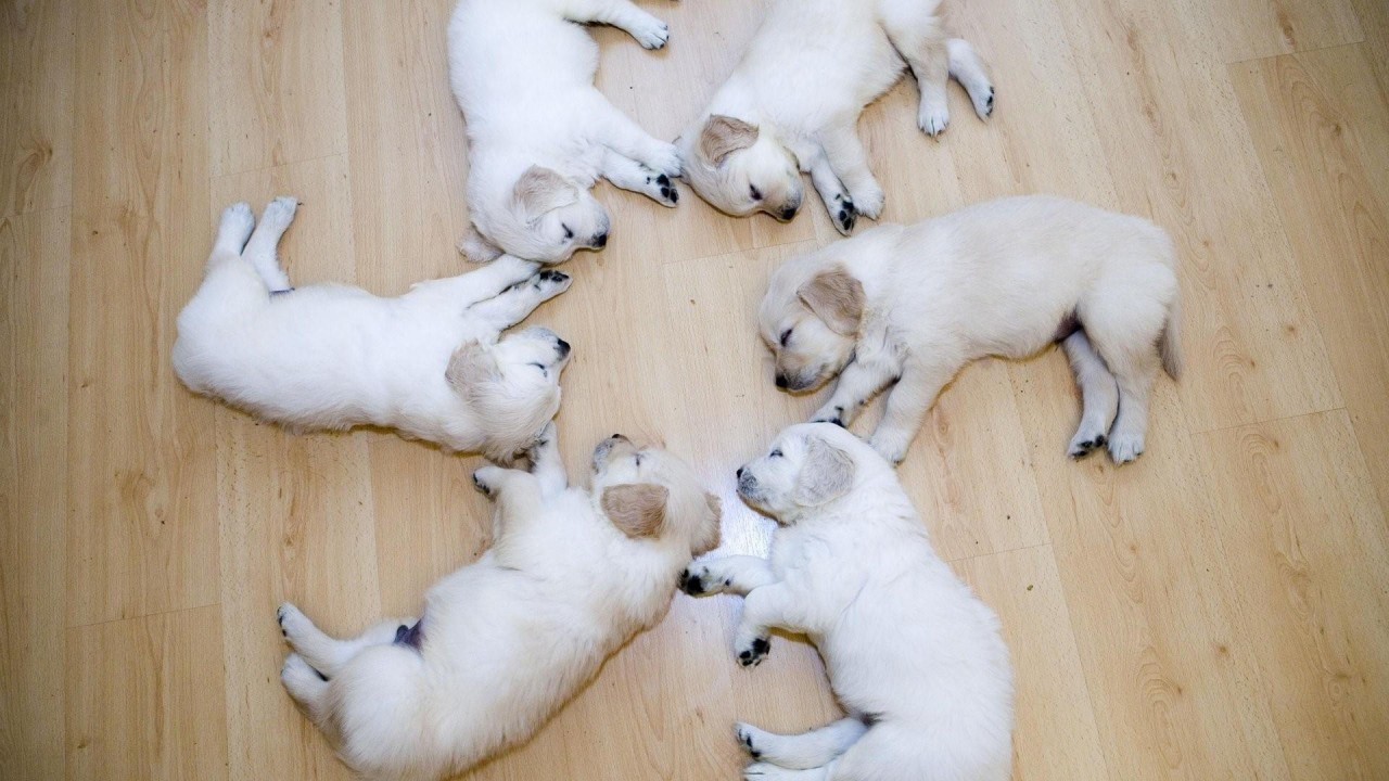 Симпатичные Шесть щенков спят в кругу обои - 1280x720 (720p)