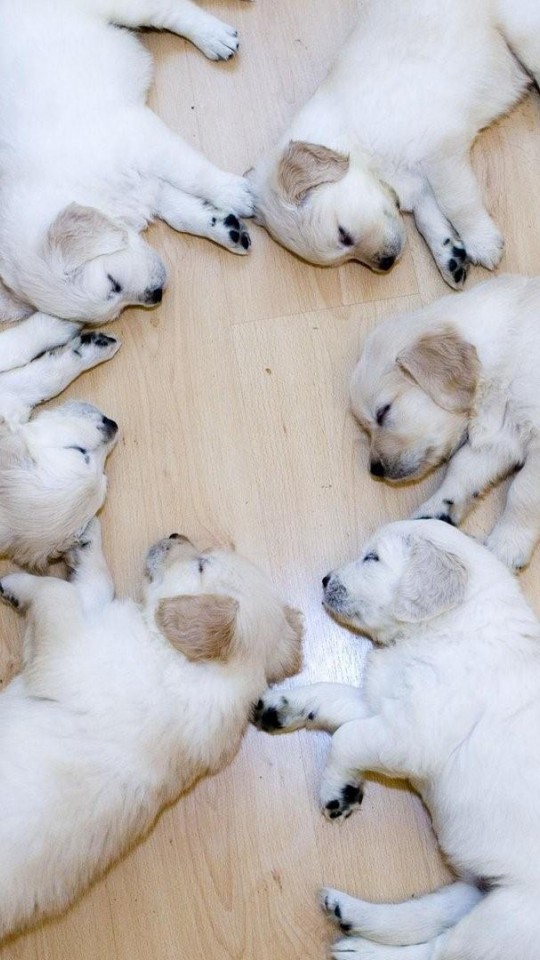 Симпатичные Шесть щенков спят в кругу обои - 540x960