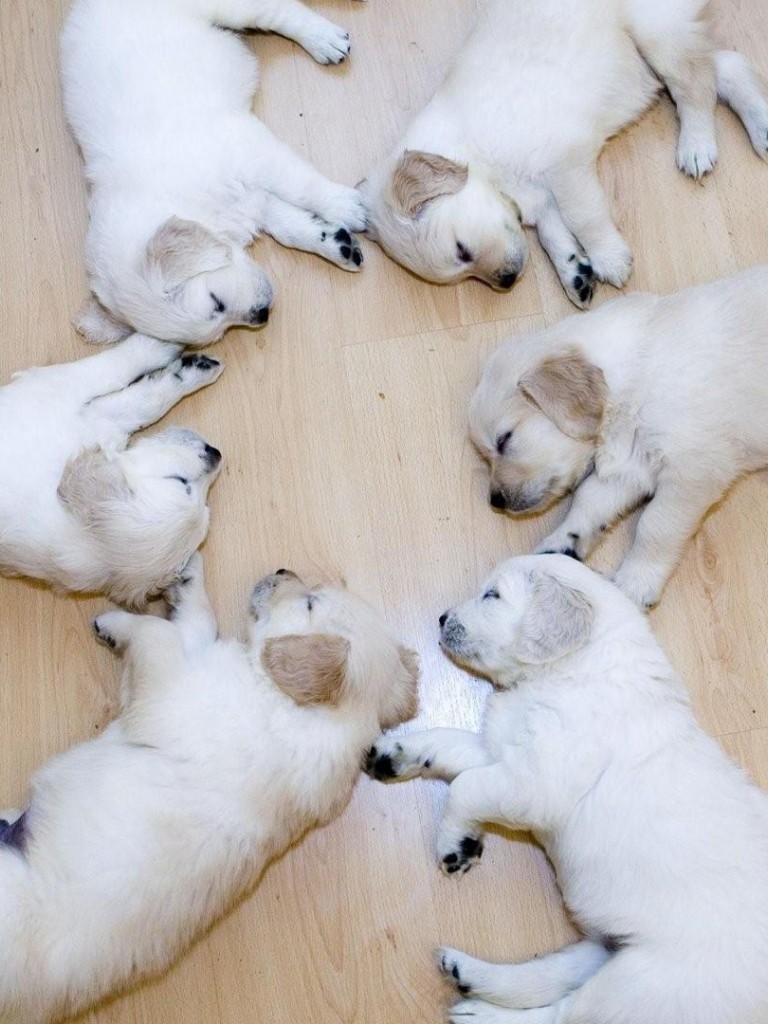 Симпатичные Шесть щенков спят в кругу обои - Non-retina iPad