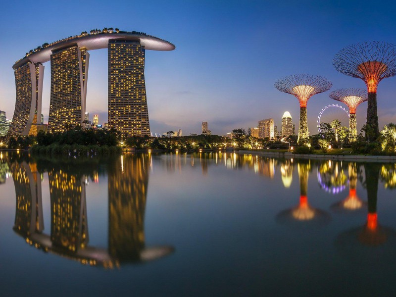 Сингапур, Город, портовые сооружения, ночь, бесплатно, фото - 800x600