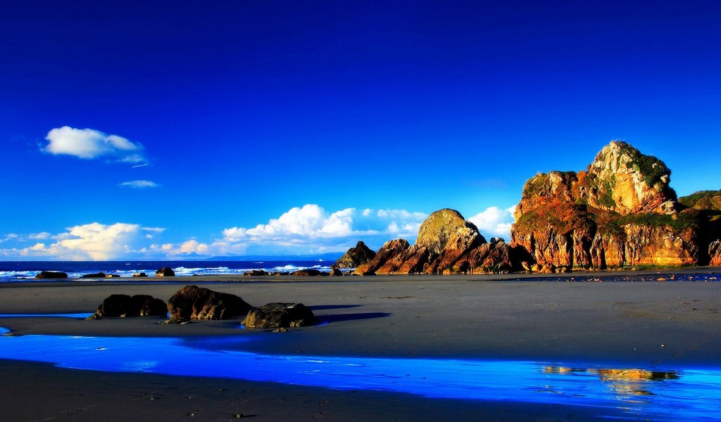 Скалы, пляж, HD обои, скачать, фоны, заставки, море - 1024x600
