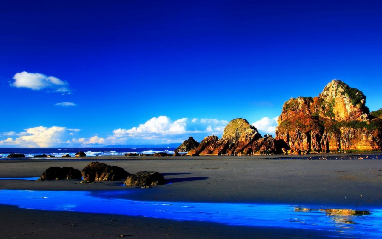 Скалы, пляж, HD обои, скачать, фоны, заставки, море - 1280x800