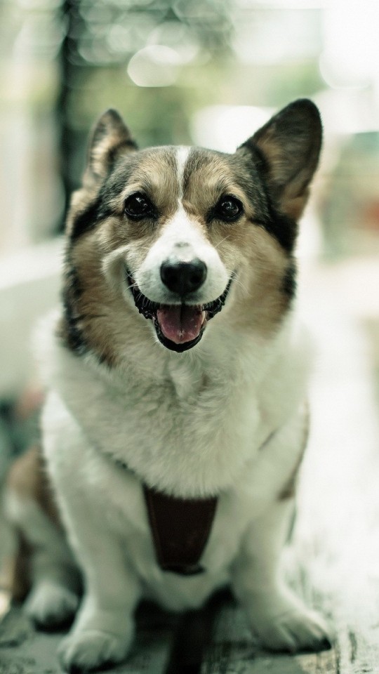 Собачка на лавочке в городе фоновые заставки скачать - 540x960