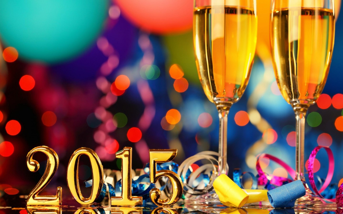 С Новым годом бокал шампанского 2015 широкоформатные обои - 1440x900