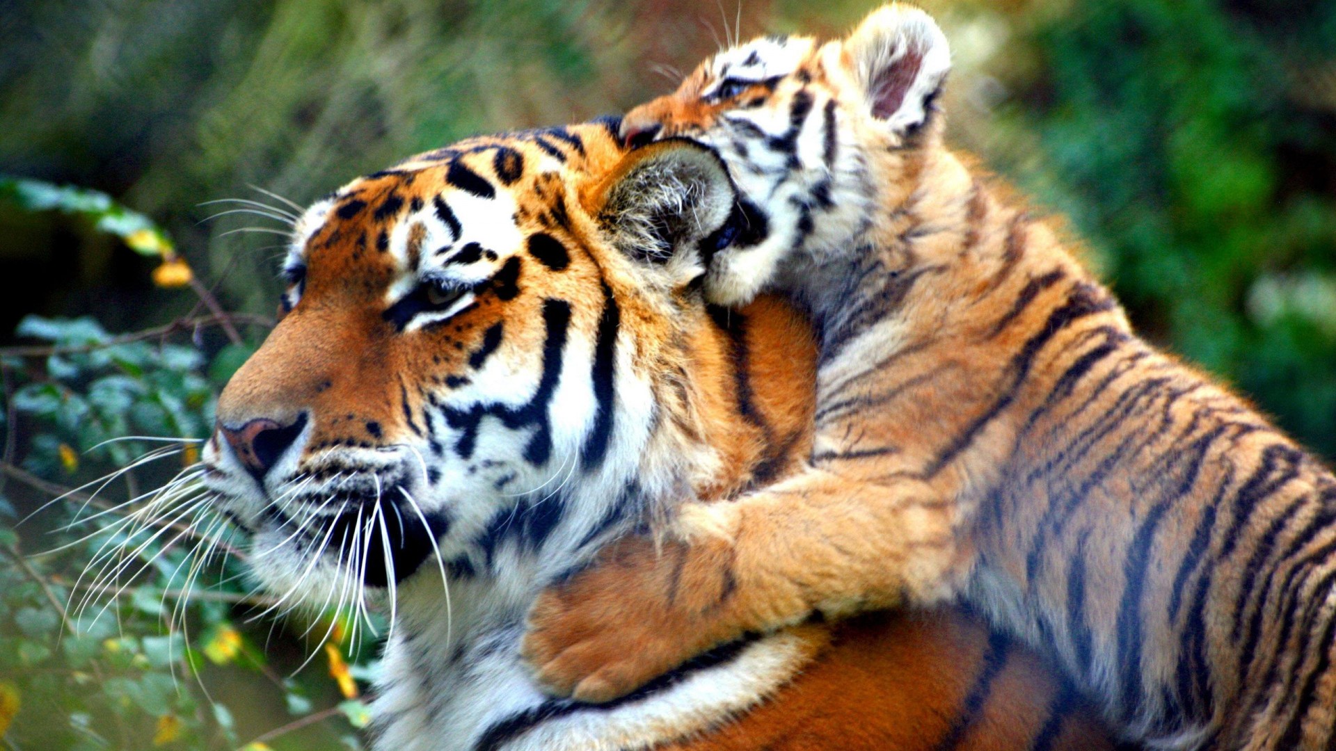 Тигр и тигренок играются картинки - 1920x1080 (1080p)
