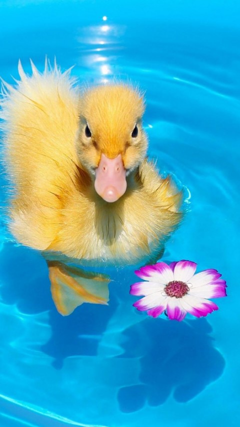 Утенок, Цветочная вода, HD бесплатно, заставки - 480x854