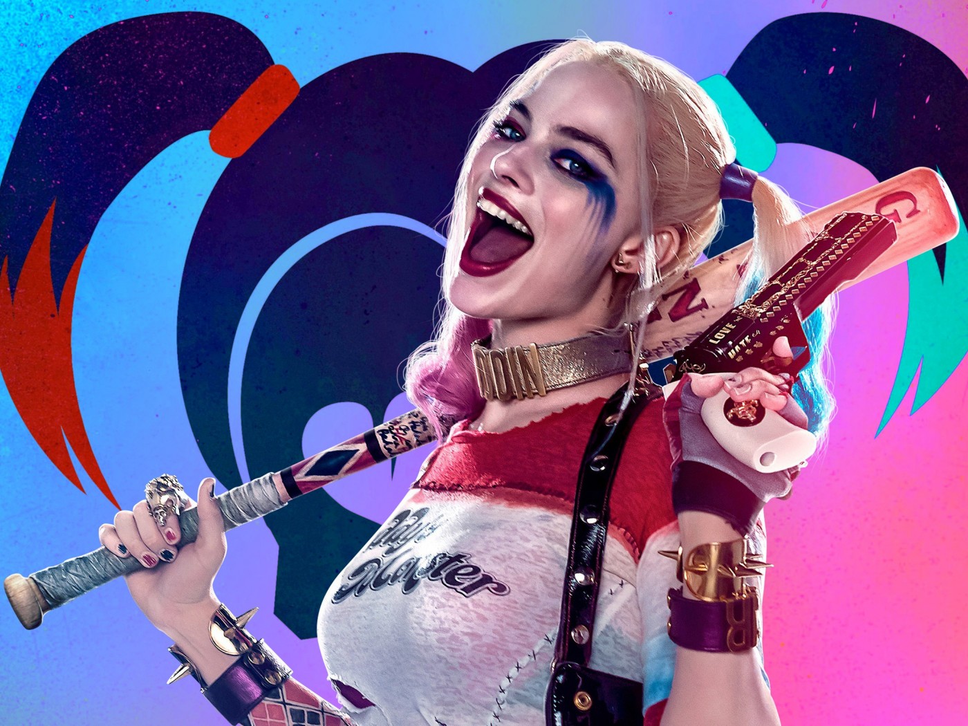 Харли Квинн, Harley Quinn, бита, смех, улыбка, суперзлодейка, DC Comics, отряд самоубийц, фильм обои - 1400x1050