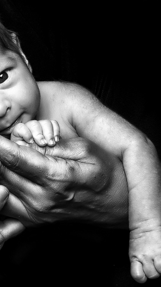Черно-белые обои младенца на руках - 540x960