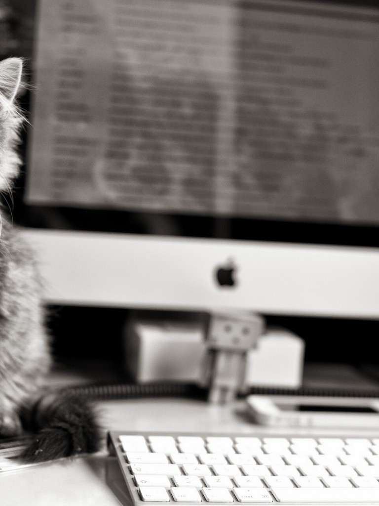 Черно-белые фото кота у компьютера рабочий стол обои - Non-retina iPad