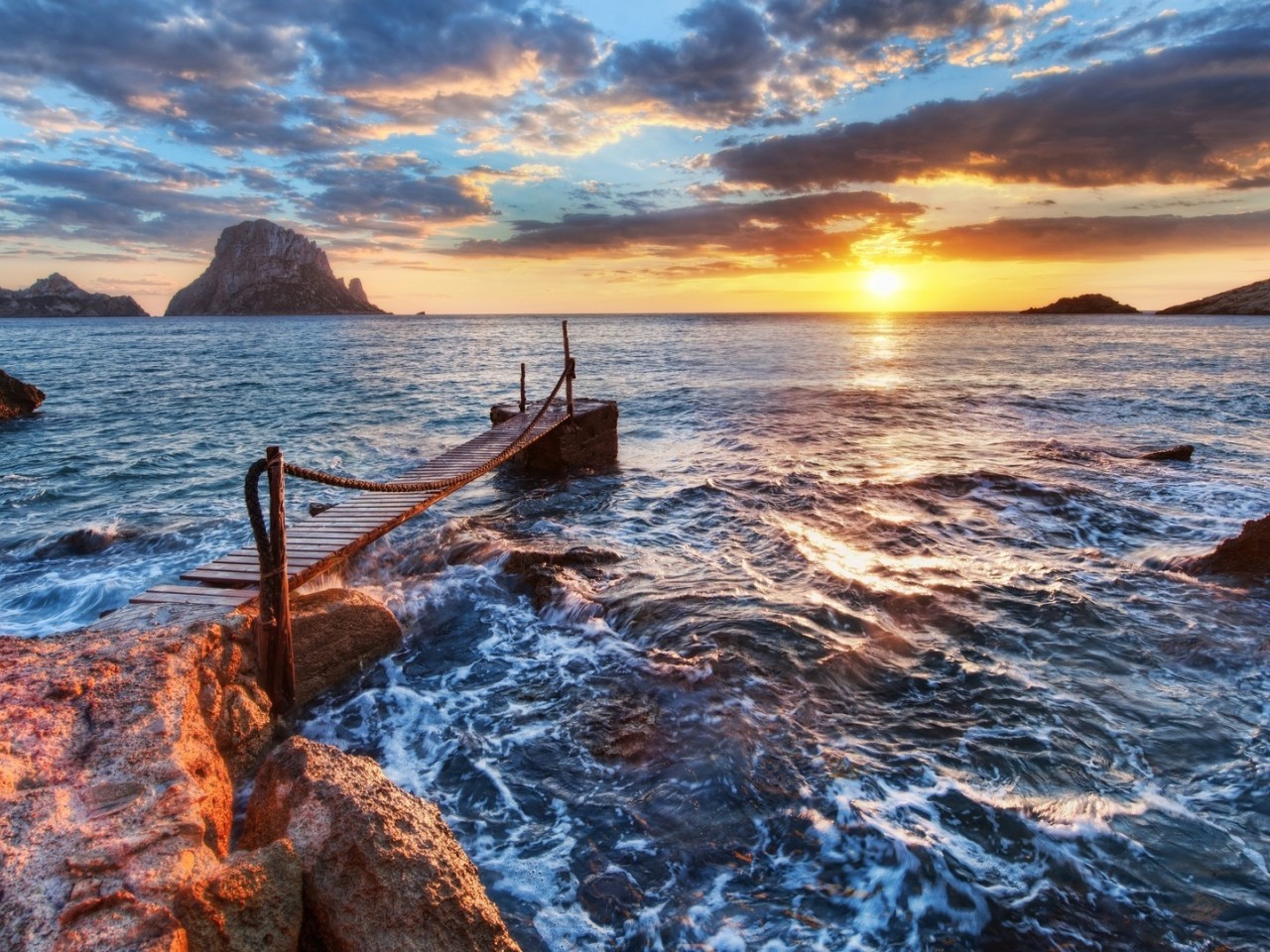 Широкоформатная обойка прекрасного расвета на берегу моря - 1280x960