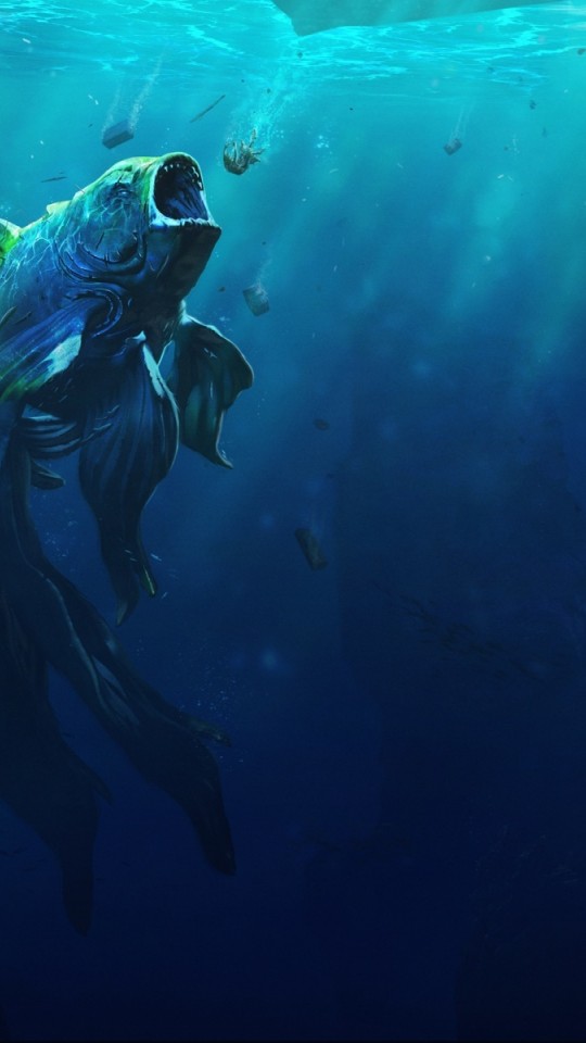 дикий монстр, золотая рыбка, подводный мир, фэнтези, рыба, обои - 540x960