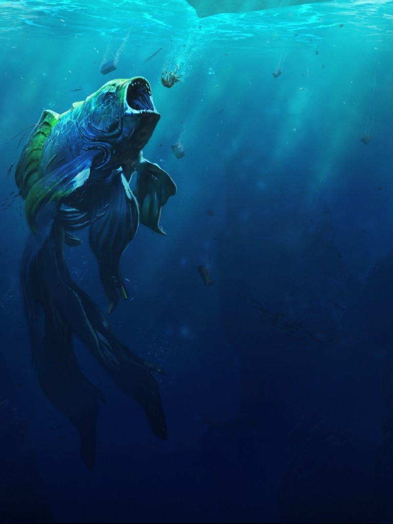 дикий монстр, золотая рыбка, подводный мир, фэнтези, рыба, обои - Non-retina iPad