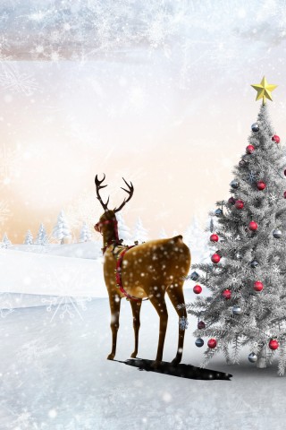 лес, звезда, шары, новый год, олень, поляна, снежинки, рендер, ёлка, деревья, игрушки, зима, снег, праздник, сугробы - Older iPhone & iPod