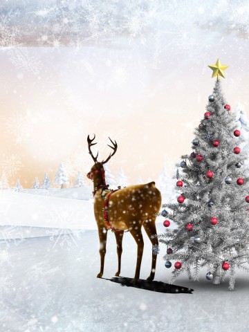 лес, звезда, шары, новый год, олень, поляна, снежинки, рендер, ёлка, деревья, игрушки, зима, снег, праздник, сугробы - 360x480