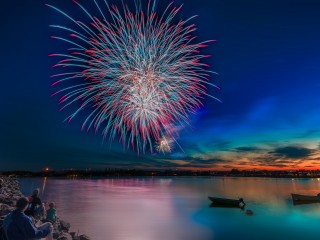 фейерверк, торжества, салют, ночь, море, набережная, праздник, вечер - 320x240