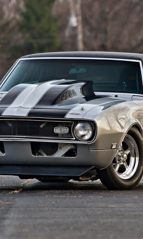 1968 Chevy Camaro вид спереди автомобиля заставки скачать - 480x800