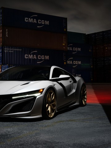 2017 Acura NSX HRE белого цвета на фоне контейнеров ночью 4k обои - 360x480