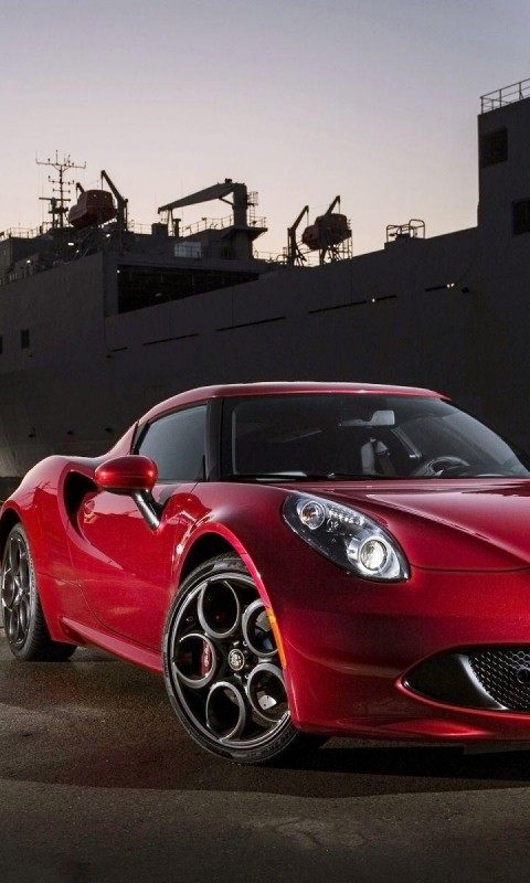 Alfa Romeo 4C красный автомобиль картинки для рабочего стола - 480x800