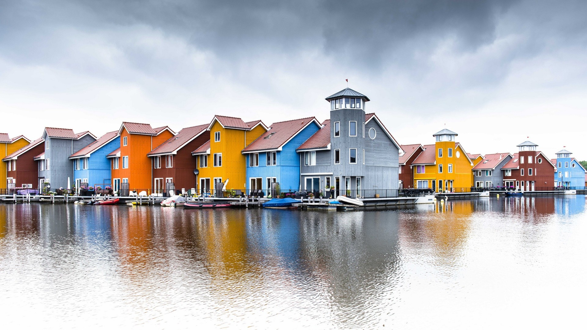 Colorful houses water reflection wallpaper high resolution hd - 1920x1080 (1080p)