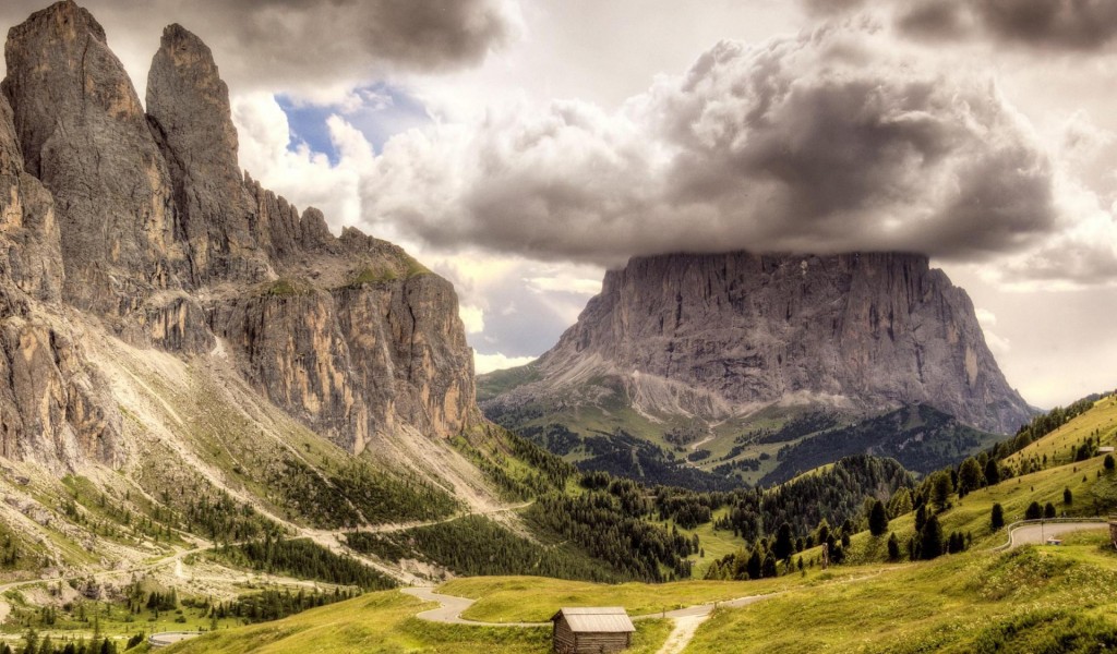 HD горы, облака, пейзажи, природа, вулканы, широкоформатные обои - 1024x600