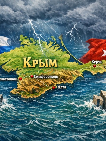 Карта Крыма и флаги России и Турции из-за анексии Крыма - 360x480