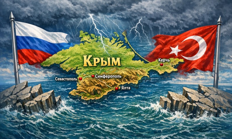 Карта Крыма и флаги России и Турции из-за анексии Крыма - 800x480