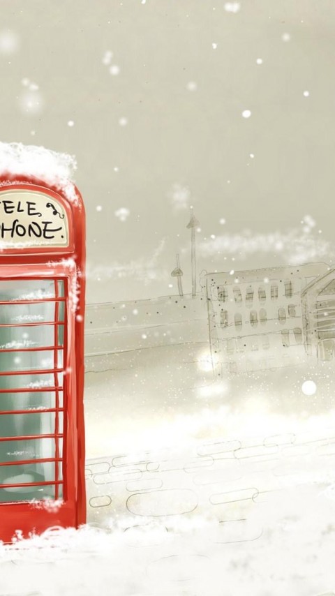 Telephone winter snowflakes snow lights city paint art wallpapers - 480x854