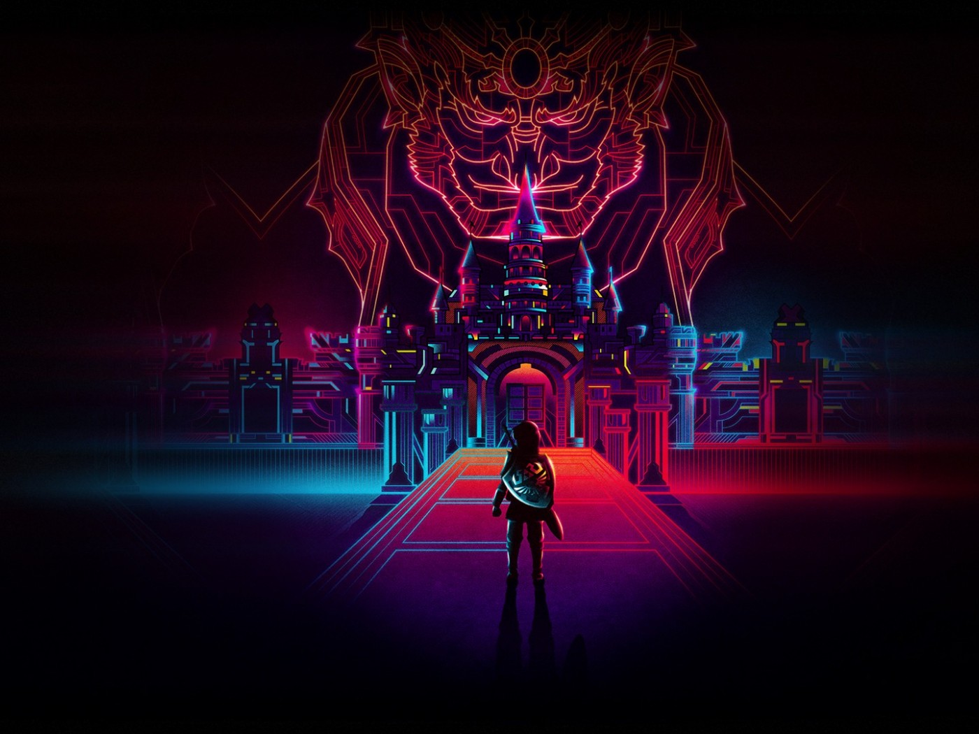 The Legend of Zelda, игра, неоны, неоновый замок, графика, легенда, зельда, фантастика обои - 1400x1050